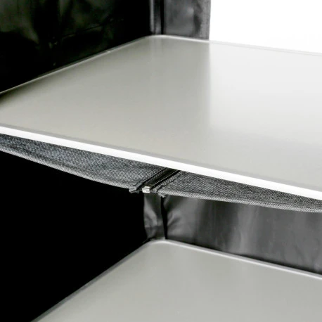 Mercury Cross HS SQ è un armadio multiuso (mobile dispensa, portaoggetti o anche porta scarpe) con ripiano superiore in bambù e struttura di nuova concezione in profilato di alluminio: ideale per organizzare al meglio gli spazi in campeggio, risulta anche una soluzione esteticamente gradevole, oltre che tecnicamente molto stabile grazie ai 4 piedini regolabili.