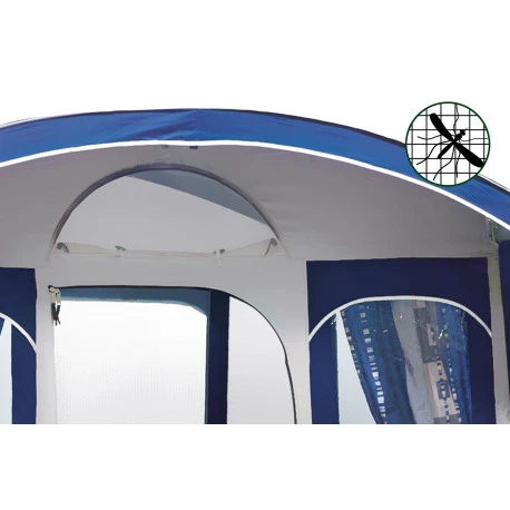 – Pareti laterali e posteriori con grandi finestre di ventilazione in zanzariera con telo copertura.