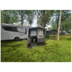 Cucinotto Eldorado Narbonne 150×200 con tetto spalmato PVC, teli laterali di poliestere traspirante, apertura e chiusura con cerniera a scorrimento. Finestre dotate di oscuranti e zanzariere e telaio in acciaio.