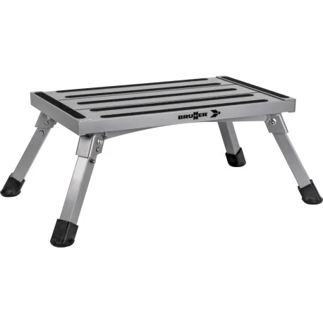 Gradino molto stabile con gambe pieghevoli. Robusta costruzione in acciaio verniciato a polvere. Elevata stabilità. Con ampia superficie anti-scivolo. Dimensioni estremamente compatte.