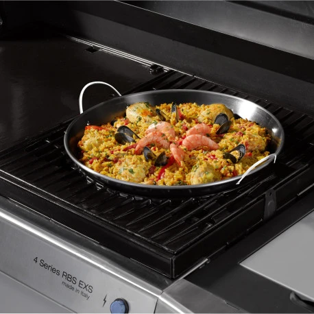 La padella per paella in acciaio inox antiaderente si inserisce direttamente nella griglia in ghisa dei BBQ Campingaz per assicurare la migliore distribuzione del calore.