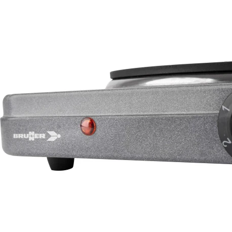 Fornello da campeggio funzionante ad elettricità: Hot Point Brunner è una piastra elettrica con diametro 18cm e corpo in metallo verniciato: la manopola di selezione potenza è regolabile su 6 posizioni. Utilissima, facile da trasportare e pulire, consente di non dover portare sempre con se bombole di gas, riduttori di pressione e tubi in gomma. Completa di cavo di alimentazione da 80 cm.