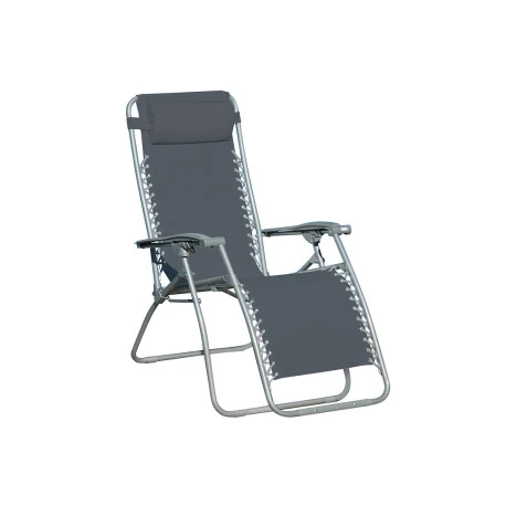 Sdraio reclinabile con robusta struttura in ferro grigio e tubi a 22 mm. La seduta in textilene 600 gr permette una pulizia facile e garantisce resistenza agli agenti atmosferici e traspirabilità. Presenta 5 posizioni differenti.