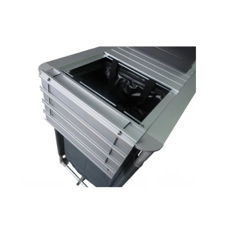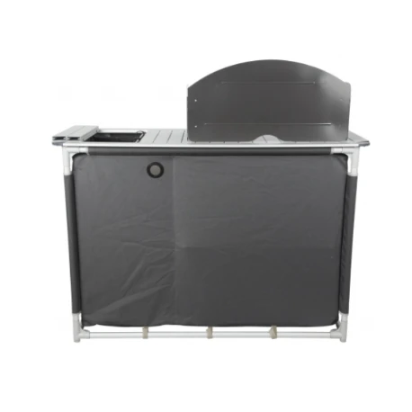 Uno dei grandi vantaggi del mobile da cucina Vega è il suo lavello integrato, una funzionalità rara e molto pratica per i campeggiatori. Permettendo di lavare facilmente i piatti o sciacquare il cibo senza doversi allontanare dalla zona cucina. Custodia inclusa.