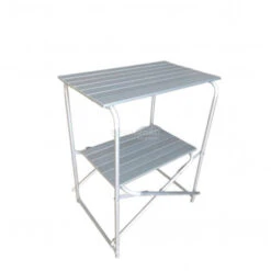 Mobile con struttura di Alluminio, compatto e leggero, perfetto come ripiano d’appoggio. Inclusa la sacca per il trasporto.