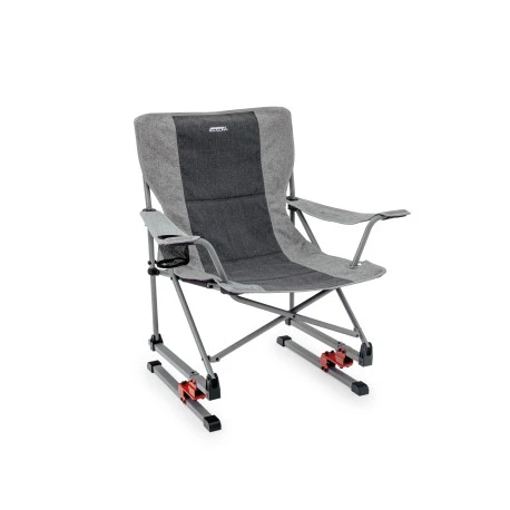 Poltrona pieghevole salvaspazio con braccioli. Dotata di innovativo giunto metallico che consente alla sedia di oscillare dolcemente, garantendo il confort di una sedia a dondolo. Tessuto in DDY che permette di avere un’elevata resistenza ai raggi UV. Porta bevanda su bracciolo destro.