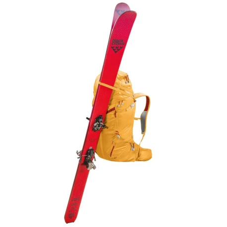 Accessori: Riflettore RECCO integrato. Cappuccio estensibile Sistema porta sci frontale. Due porta piccozza. Cinturino pettorale con fischietto integrato. Nastri di compressione laterale. Nastri addizionali frontali amovibili porta materiali. Asola porta materiali su fascia a vita. Asole porta piccozza e porta sacco a scomparsa. Asole su spallacci per l’inserimento di tasche e porta bottiglie (non incluse). Compatibile con il sistema di idratazione H2 Bag. Istruzioni SOS. Compatibile con Helemet Holder.