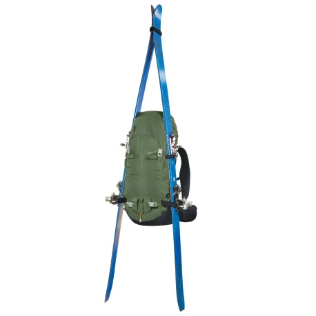 Accessori: Cappuccio amovibile, pannello di irrigidimento dorso amovibile, cintura a vita amovibile. Riflettore RECCO integrato, due porta piccozze con asole superiori amovibili. Porta sci laterale. Asole porta corda superiori (con nastri addizzionali) Anelli porta materiali frontali (con nastri addizionali) Nastri di compressione laterale. Cinturino pettorale con fischietto integrato. Asole porta materiali su fascia a vita e interno dorso. Compatibile con il sistema di idratazione H2 Bag. Compatibile con “Helmet Holder” Asole porta casco. Istruzioni SOS.